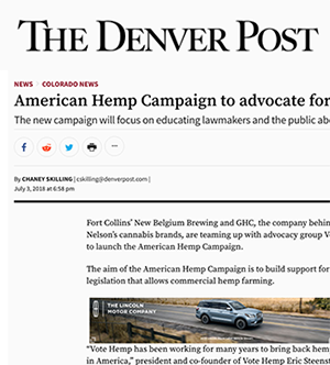 Fort Collins’ New Belgium Brewing and GCH, the company behind Willie Nelson’s Cannabis brands, are teaming up with advocacy group Vote Hemp to launch the American Hemp Campaign.
